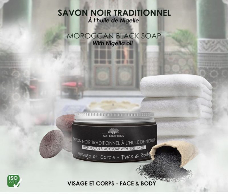 Produit issue de la saponification à la potasse et d’huile végétale de Nigelle, d’Olive, et de Tournesol.