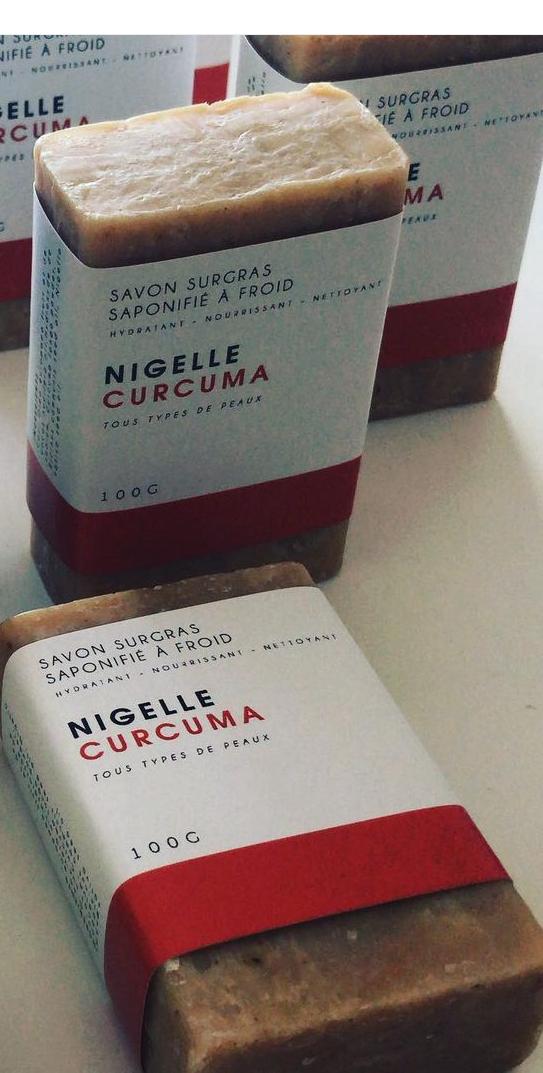 Produit issue de la saponification à la soude et d’huile végétale de Nigelle, d’Olive, de ricin et de Coco.